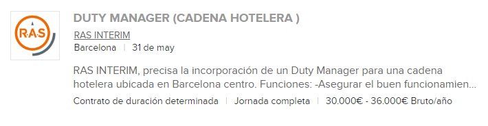 He realitzat la recerca a la pàgina web d’INFOJOBS i la oferta de treball que més m’ha interessat ha sigut aquesta: