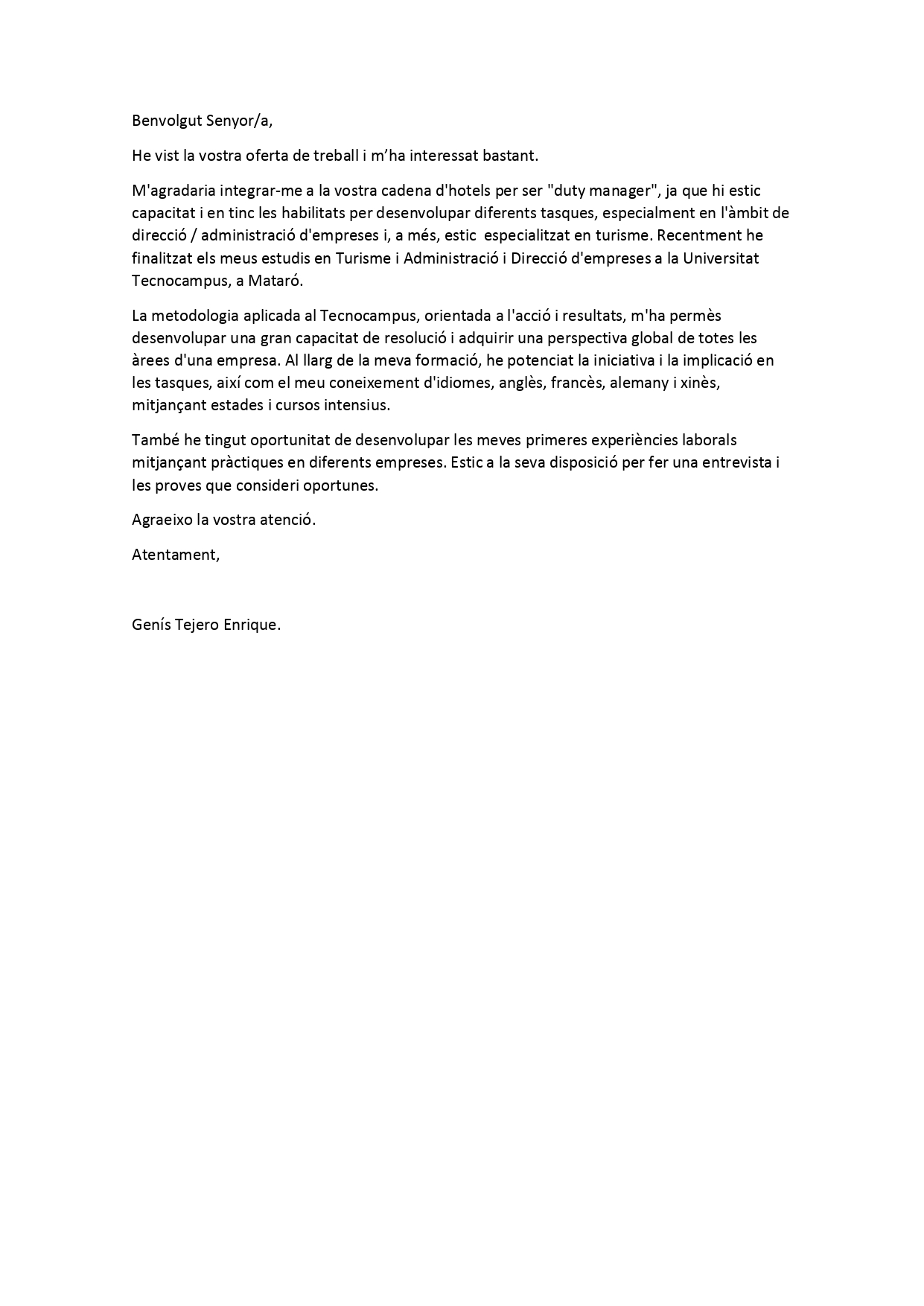 He escollit aquesta oferta perquè crec que és la que més s’ajusta als estudis que vull fer en un futur, i també m’agrada la feina que t’ofereixen, i crec que compleixo tots els requisits:
