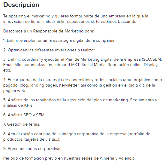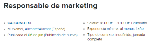 La oferta de treball que he escollit és la número 3 de la meva llista, ja que s’adapta perfectament al que busco, que és un contracte indefinit i un sou alt. També és necessari saber idiomes, el qual és un punt a favor meu ja que tinc el certificat de proficiency en anglès.